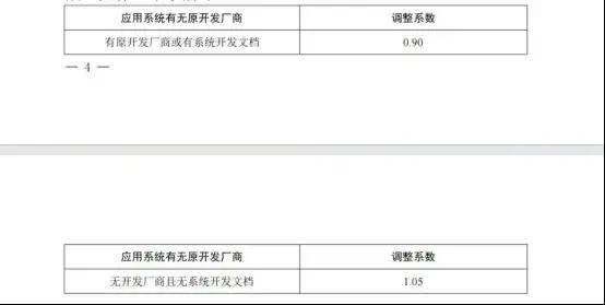 面向应用系统是否有原开发厂商支撑而相应设置的调整系数。具体如下表所示: