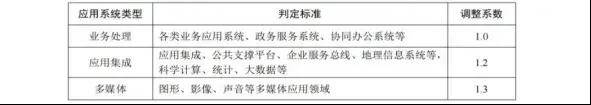 针对不同应用系统类型特点,相应设置调整系数。系统的类型分类及系数取值参考如下表所示: